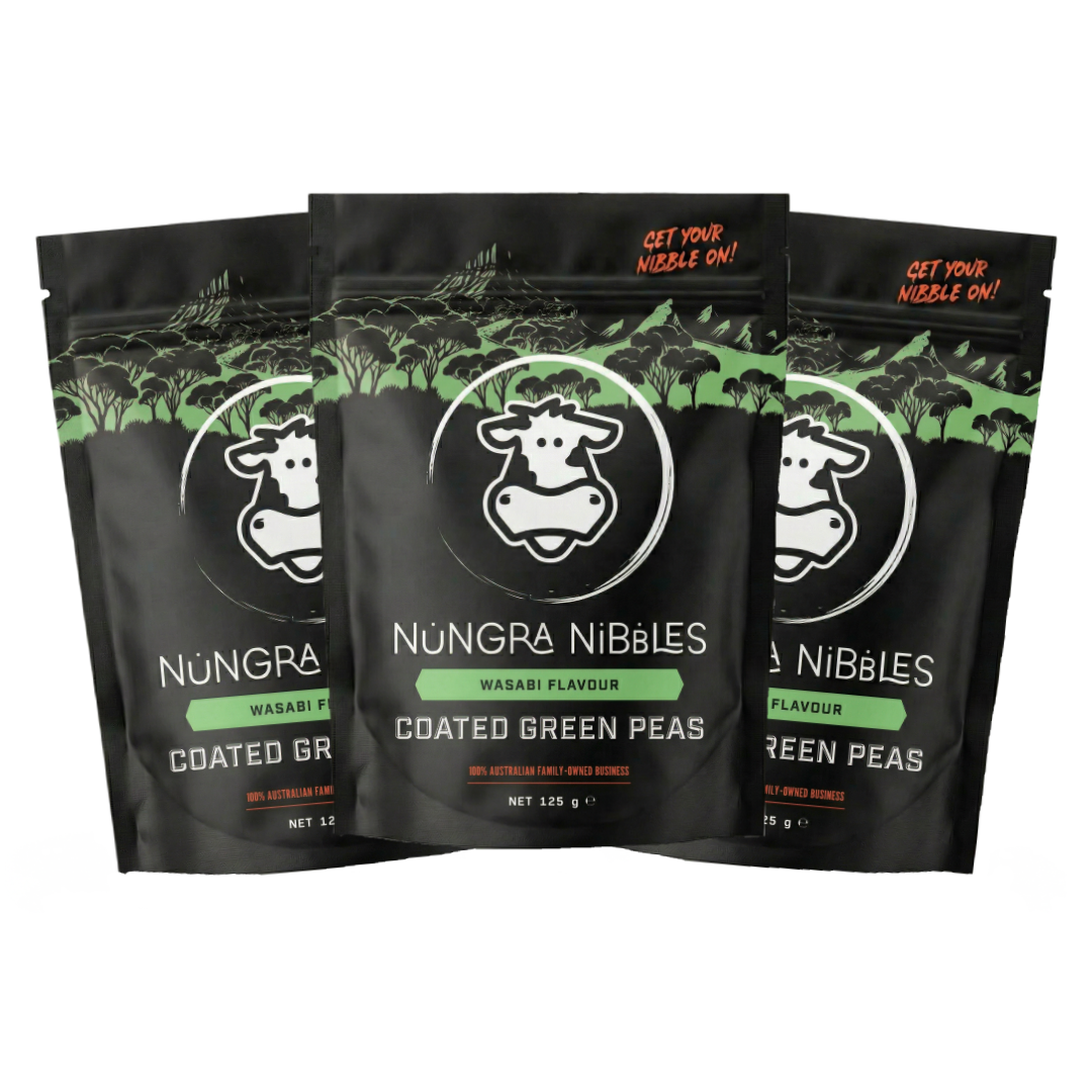 Nungra Nibbles Wasabi flavoured green peas have been roasted and coated in a mixture of flour , sugar, salt, oil and the intense wasabi paste. These nibbles are a great crunchy snack with a distinctly sharp, fiery flavour. Experience the crisp texture and spicy flavour explosion!
