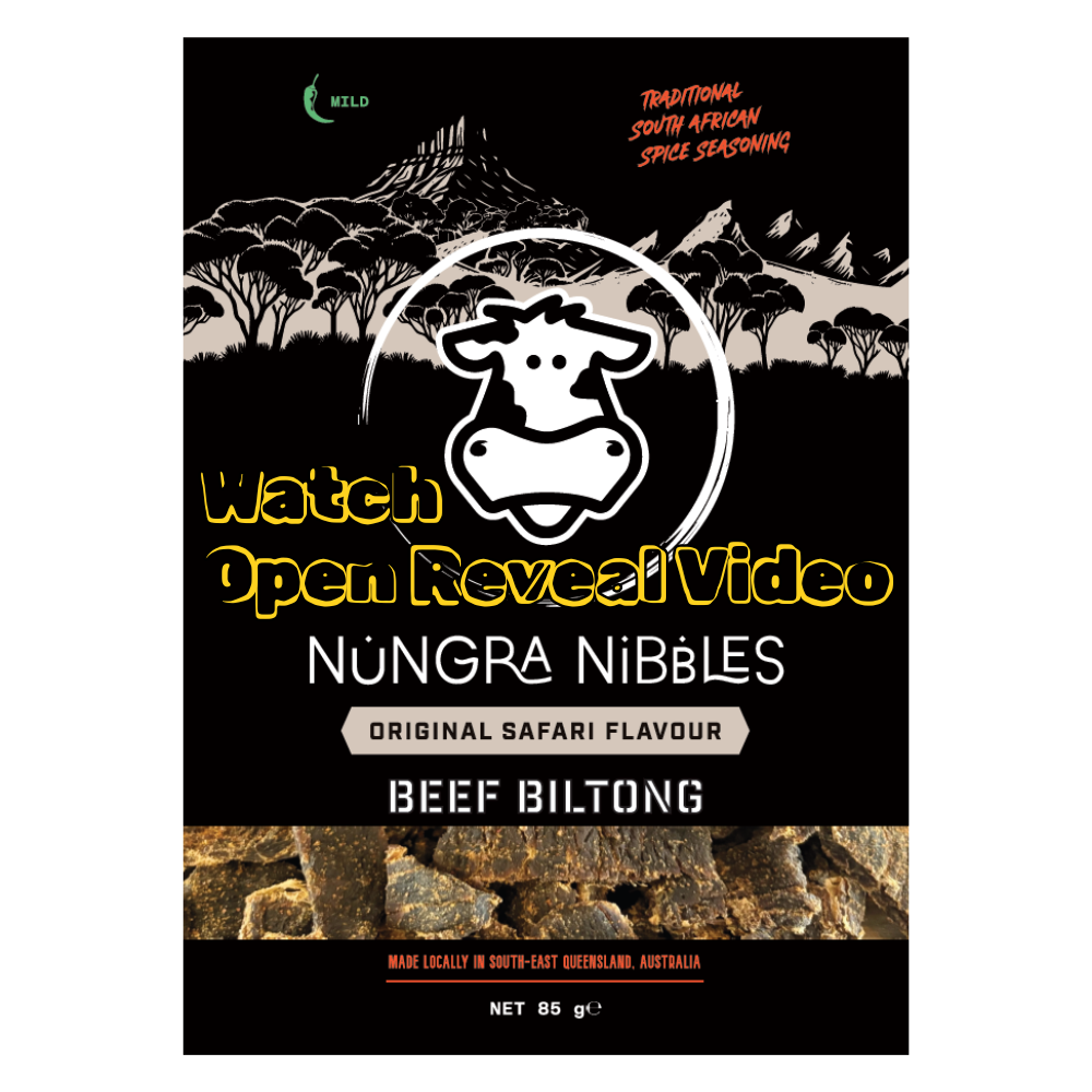 Nungra Nibbles Beef Biltong is a rich source of protein, made with 100% Australian grass-fed beef, marinated in vinegar, seasoned with Safari spices, and slowly air-dried to perfection.